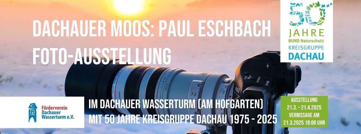 Die Kreisgruppe Dachau im BUND Naturschutz in Bayern e. V. und der Dachauer Fotograf Paul Eschbach laden alle Bürgerinnen und Bürger aus der Stadt Dachau, dem Landkreis Dachau und darüber hinaus ganz herzlich in unserer Fest- und Foto-Ausstellung im Dachauer Wasserturm ein.