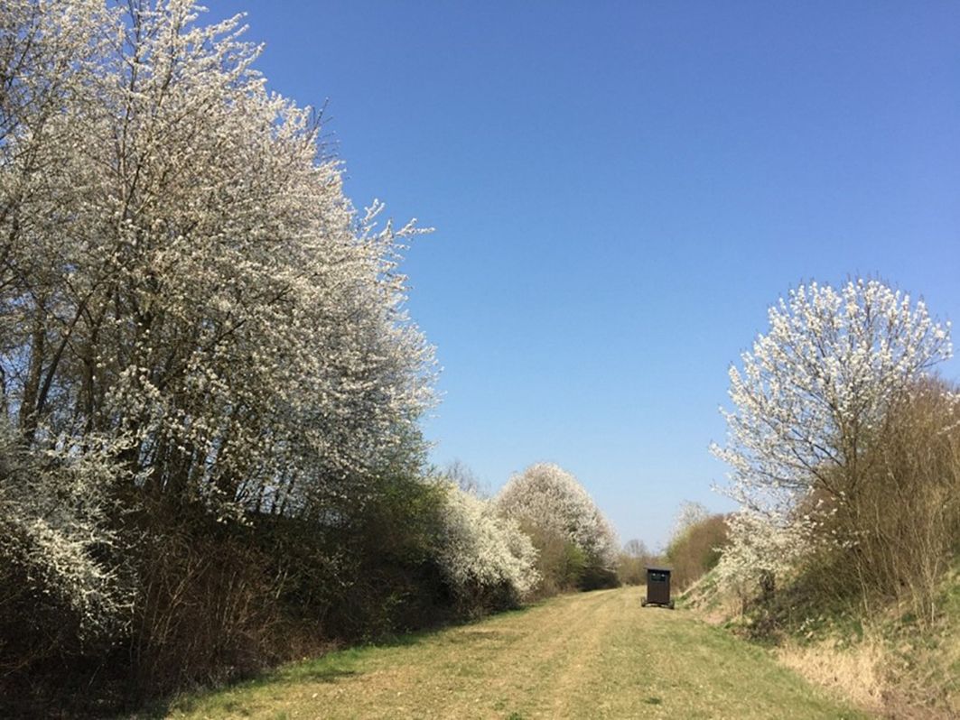 Im südlichen Bereich haben sich viele Kirschbäume angesiedelt, die im Frühjahr eine gute Nahrung für Bienen und Insekten liefern.