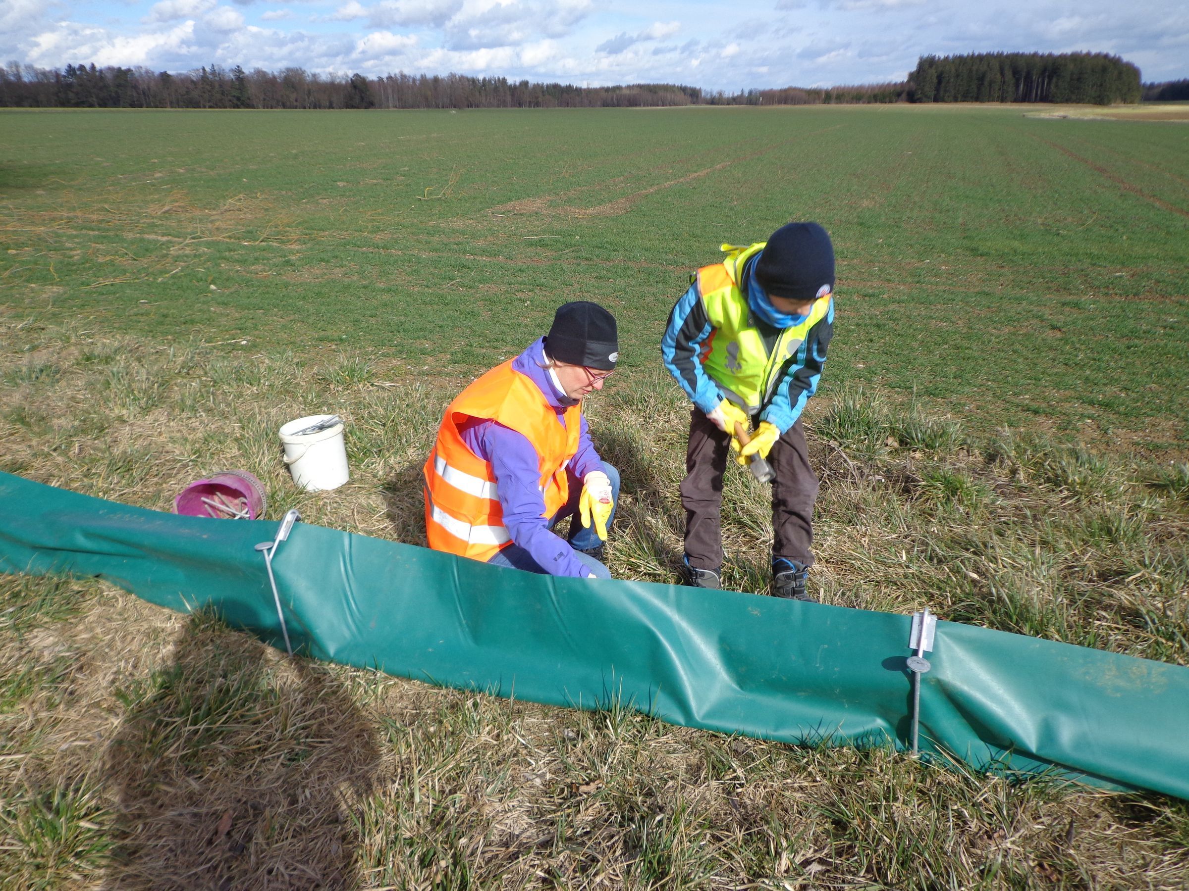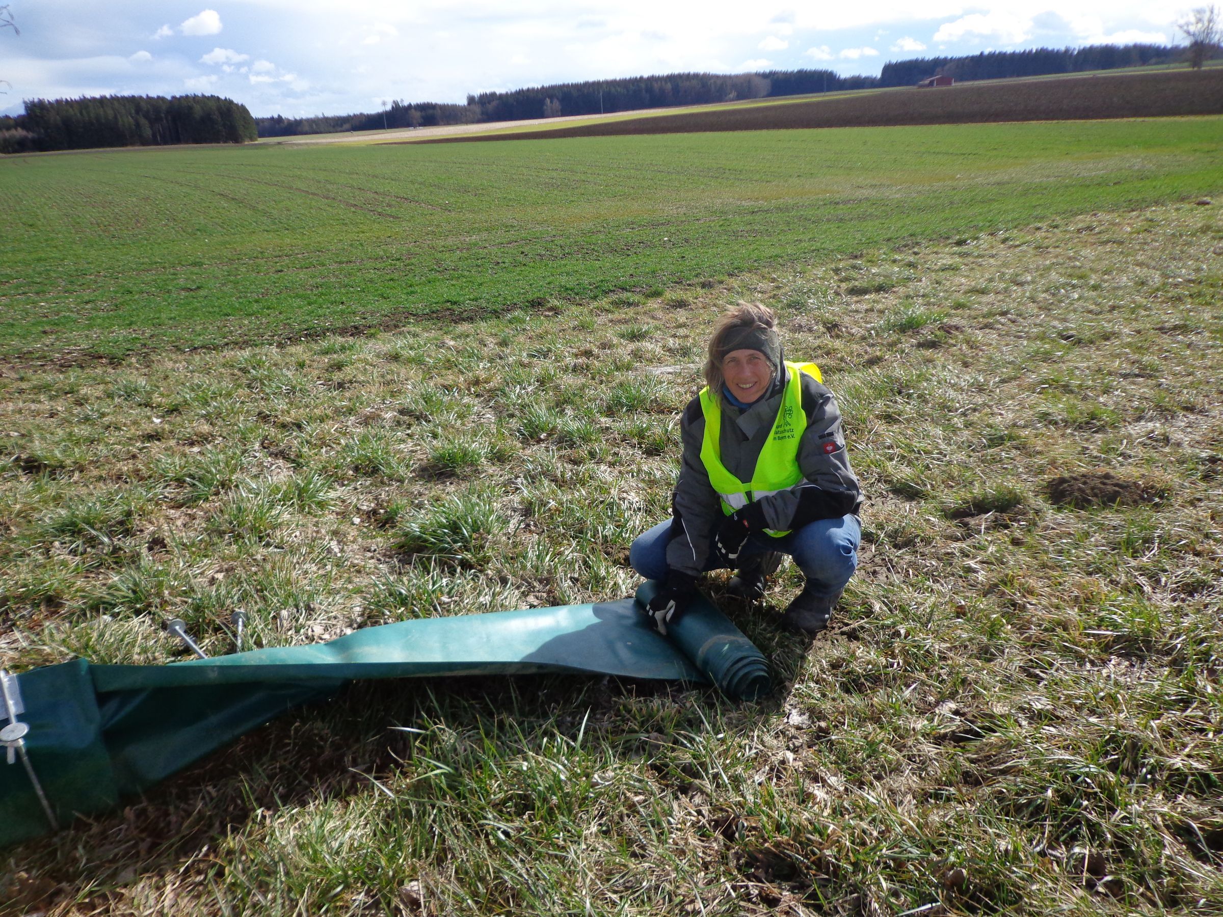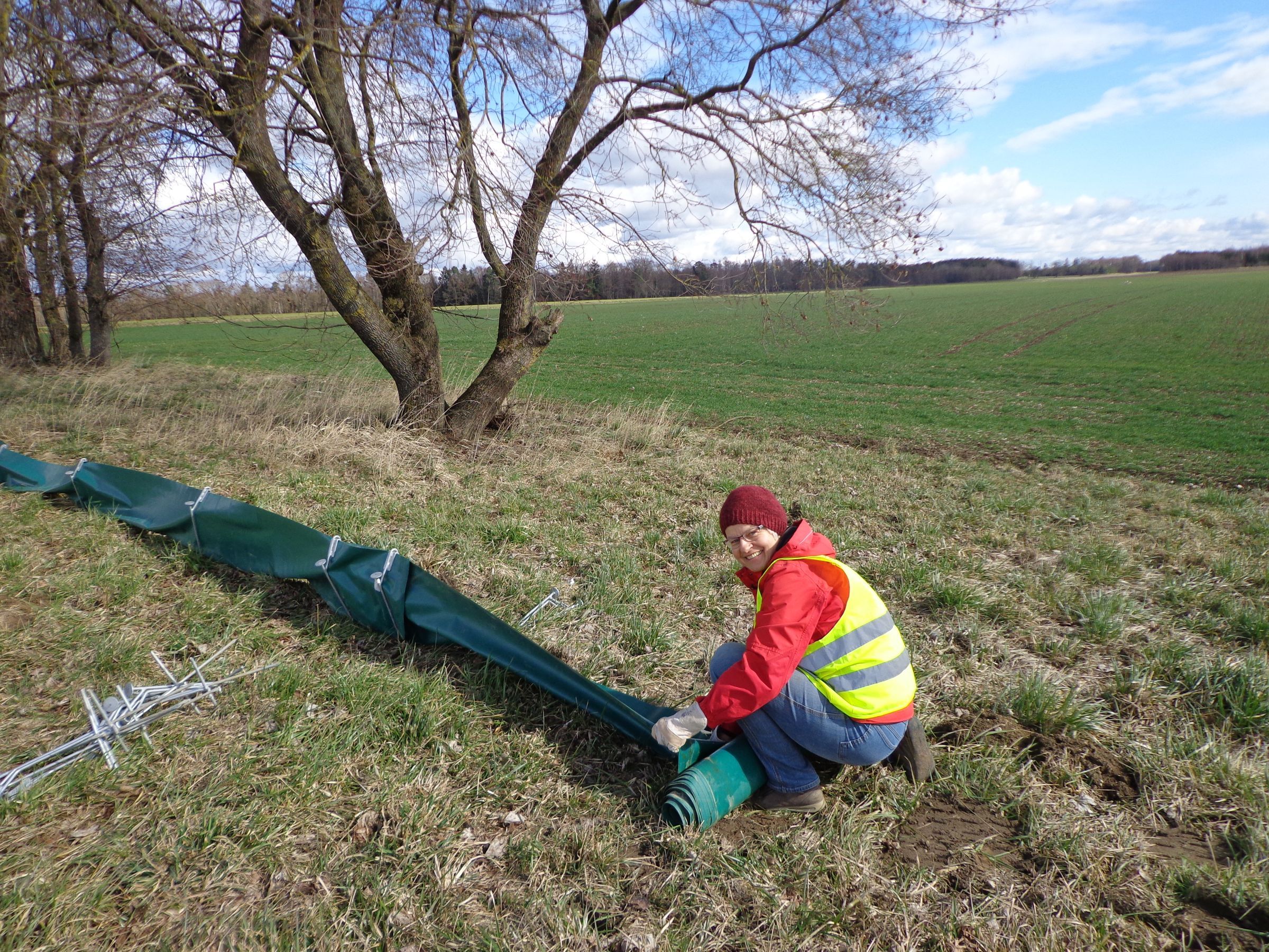 In Vogach ist der Zaun ca. 500 Meter lang und wir haben 990 Kröten, 91 Frösche und 199 Molche in den Eimern gefunden.