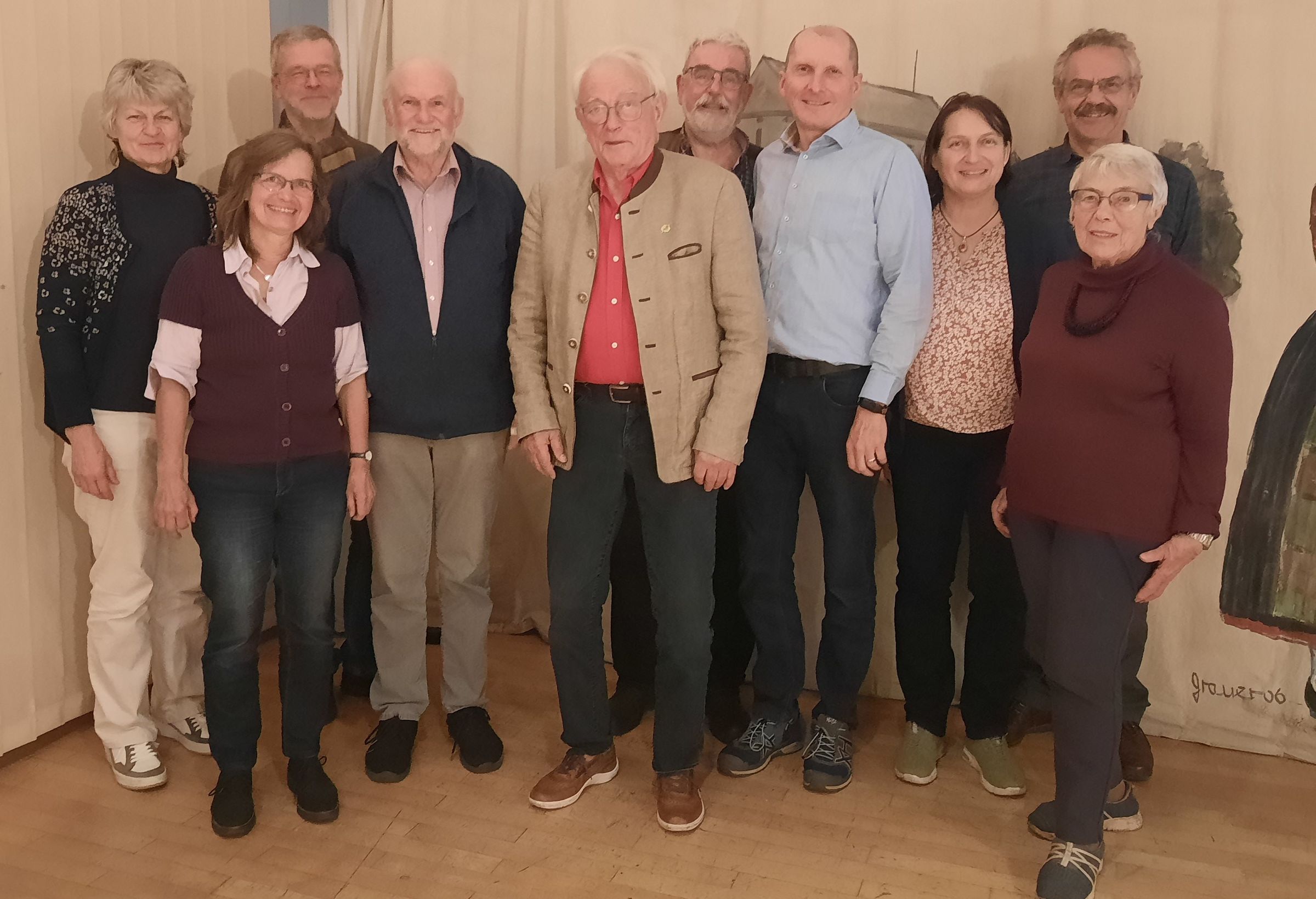 Foto: Susanne Vedova (Delegierte), Dr. Charlotte Boltz (Beisitzerin), Peter Heller (Delegierter), Heinz Gibowsky (2. Vorsitzender), Dr. Roderich Zauscher (1. Vorsitzender), Martin Heimerl (Schriftführer, Ersatzdelegierter), Manfred Sailer (2. Vorsitzender), Gerda Weinbacher (Kassier), Peter Kulzer (Ersatzdelegierter), Erika Seidenspinner (Beisitzerin)